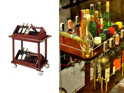 • Carro VinoEspecificaciones: carro de Vino 4 ruedas, de 3 capas Tamaño: 910 (L) x 600 (W) x 1110 (H) mm Material: madera y acero inoxidable, 4 ruedas