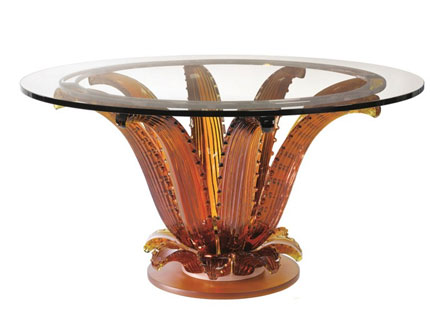 • Mesa de cristal redonda Mesa de cristal redonda Diseño CACTUS Trabajada en cristal satinado y pulido